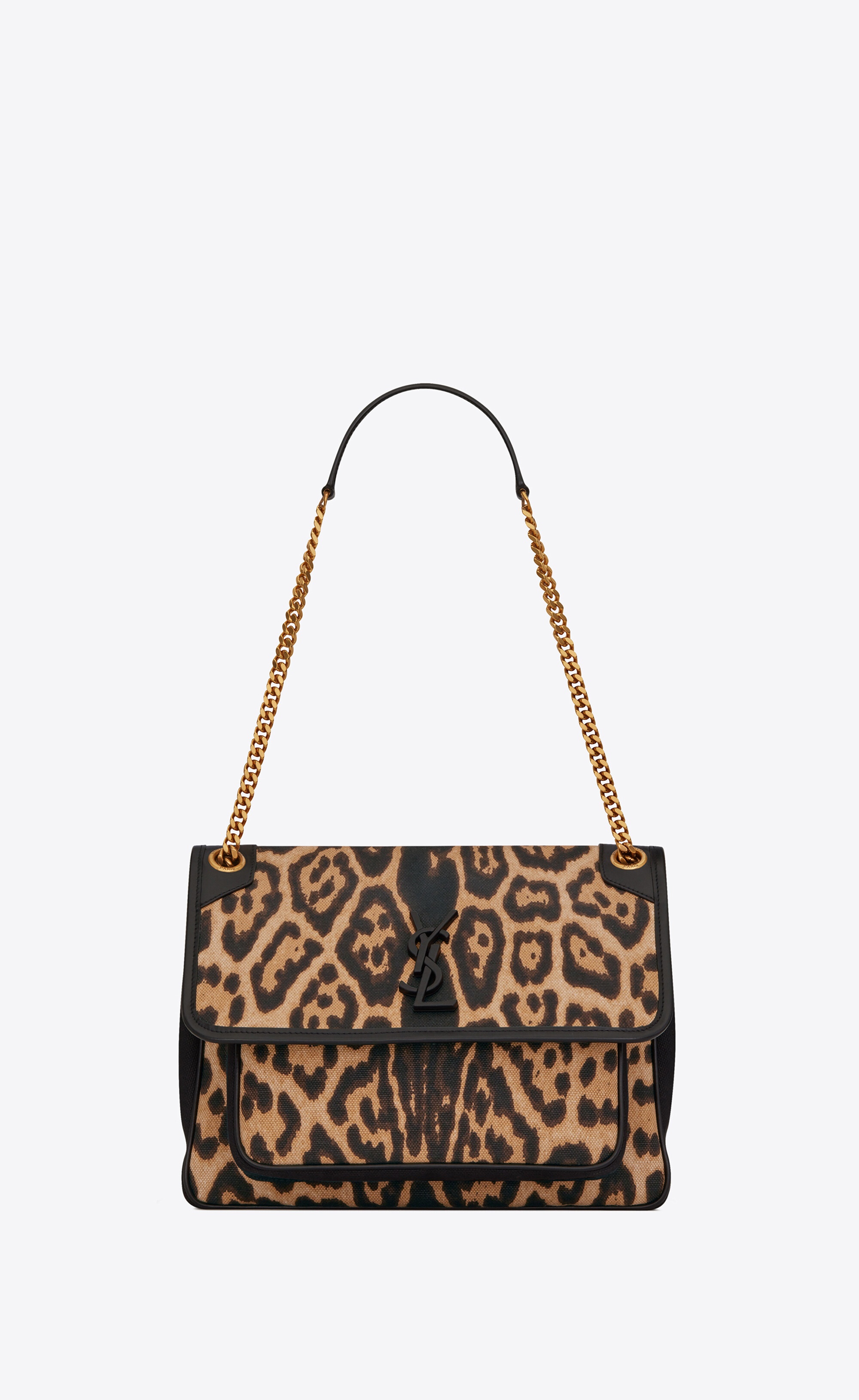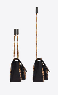 SAINT LAURENT MONOGRAM BAG WITH FRONT FLAP, YSL LOGO IN COVERED METAL, A CHAIN AND LEATHER SHOULDER STRAP THAT CAN BE WORN IN TWO WAYS. - 100% COTTON - DIMENSIONS: 28 X 20 X 8,5 CM / 11 X 7.8 X 3.3 INCHES - BRONZE-TONED METAL HARDWARE - MAGNETIC SNAP CLOSURE - INTERIOR: ONE CENTRAL COMPARTMENT, ONE ZIP POCKET, ONE FLAT POCKET, ONE OPEN POCKET AT THE FRONT - ONE FLAT POCKET WITH MAGNETIZED CLOSURE AT THE BACK - UNFOLDED SHOULDER STRAP DROP: 53 CM - FOLDED SHOULDER STRAP DROP: 30 CM - STYLE ID 809316852 - MADE IN ITALY