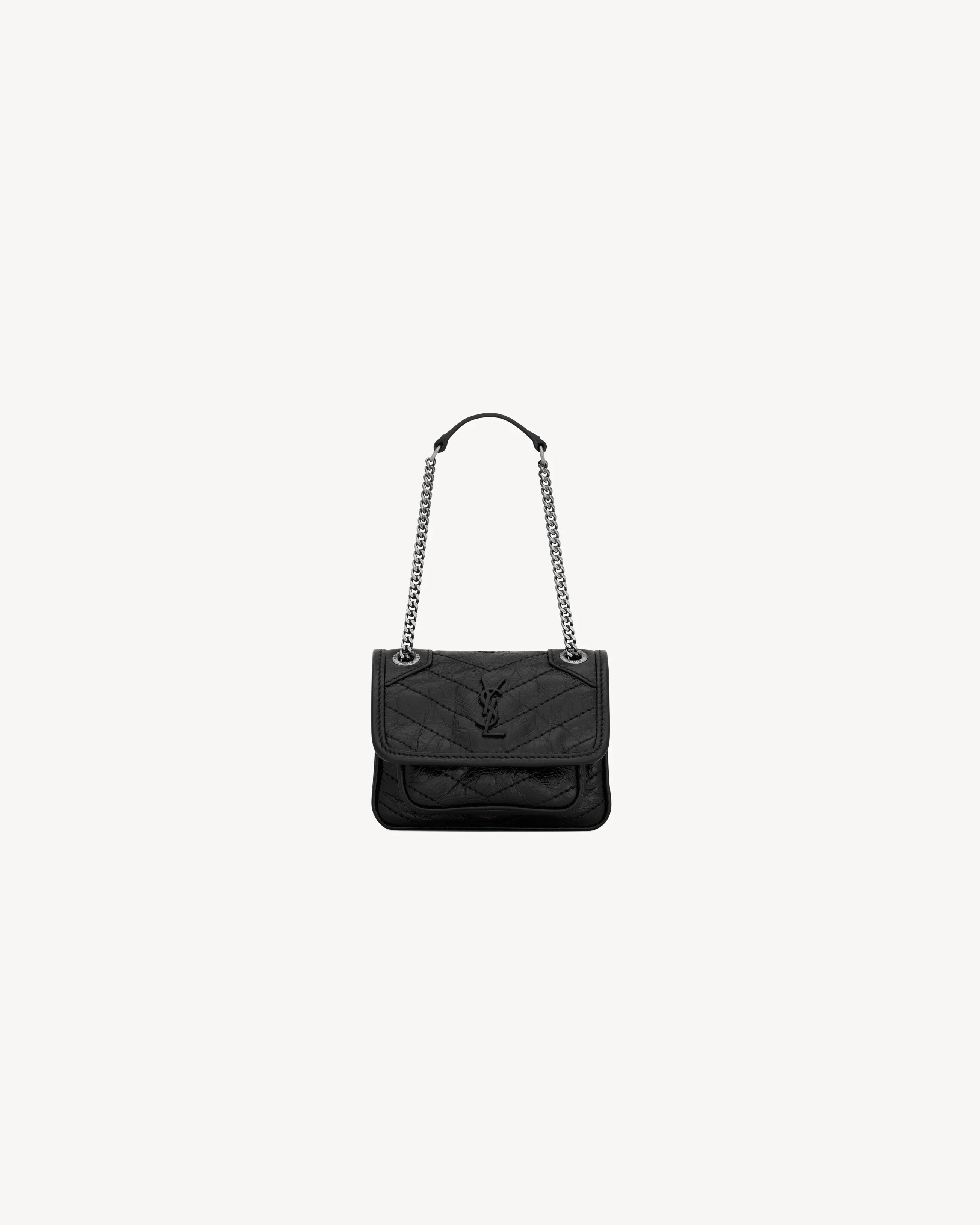 THE MICRO VERSION OF THE NIKI BAG, DECORATED WITH THE CASSANDRE AND CHEVRON-QUILTED TOPSTITCHING. FEATURING A SLIDING CHAIN STRAP, IT MAY BE CARRIED BY HAND OR ATTACHED TO A BAG. - LEATHER LINING - BRONZE-TONED HARDWARE - MAGNETIC SNAP CLOSURE - DIMENSIONS: 7.5 X 10 X 5 CM / 3" X 3.9" X 2" - HANDLE DROP: 18 CM / 7.1" - 80% CALFSKIN, 20% BRASS - STYLE ID 8239510EN041000 - MADE IN ITALY