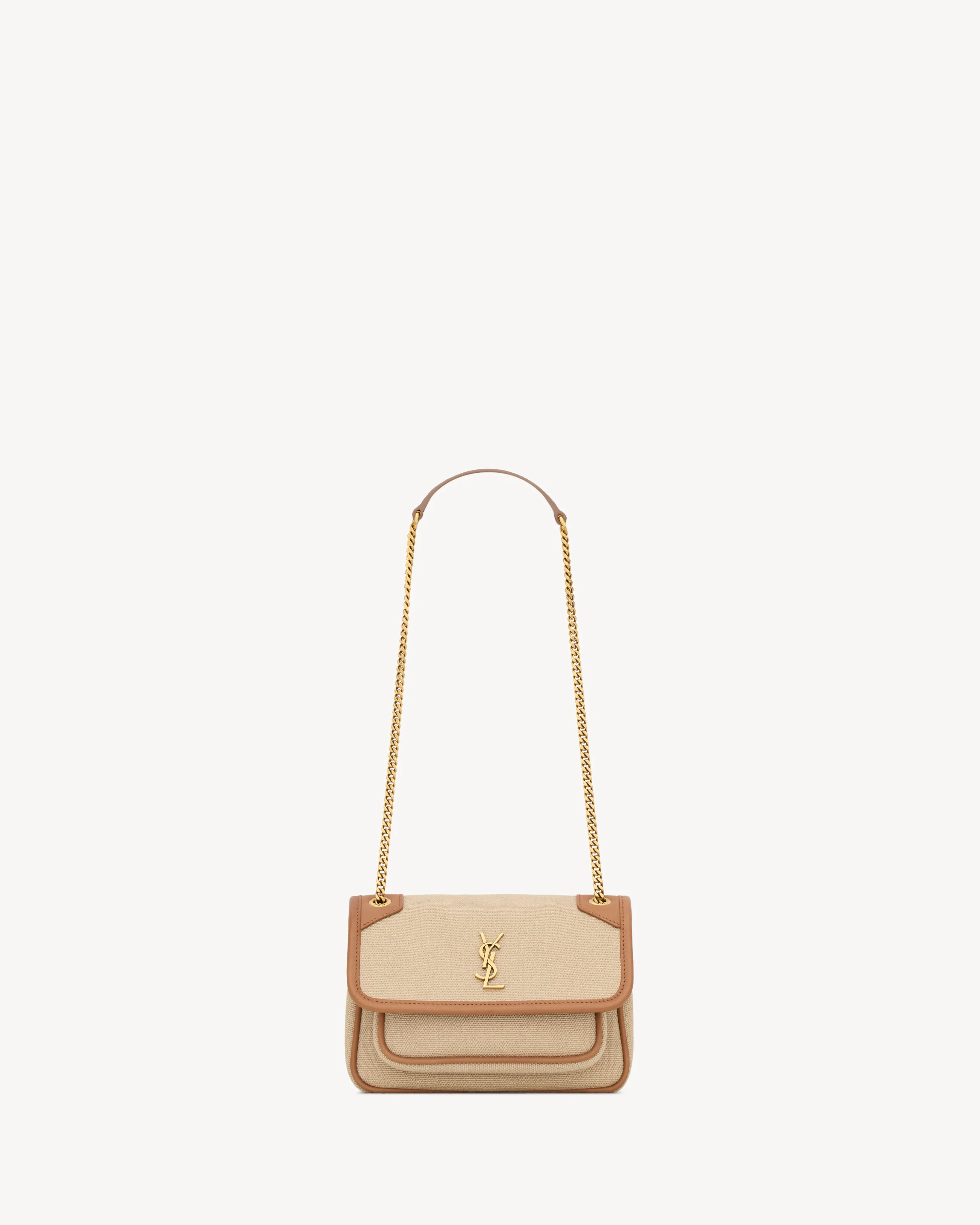THE MINI VERSION OF THE ICONIC NIKI, MADE WITH CANVAS AND VEGETABLE-TANNED LEATHER. THIS PRACTICAL, LIGHTWEIGHT BAG FEATURES TWO MAIN COMPARTMENTS AND A BACK POCKET. A SLIDING CHAIN STRAP PROVIDES BOTH SHOULDER AND CROSSBODY CARRY OPTIONS. - CERTIFIED COTTON - COTTON LINING - BRONZE-TONE HARDWARE - MAGNETIC SNAP CLOSURE - TWO MAIN COMPARTMENTS - ONE FLAT POCKET - ONE FLAT POCKET AT THE BACK - DIMENSIONS: 18 X 12.5 X 5 CM / 7.1" X 4.9" X 2" - SINGLE-STRAP DROP: 55 CM / 21.7" - DOUBLE-STRAP DROP: 30 CM / 11.8" - TOILE CUIR DE VEAU METAL - STYLE ID 828736FAEFF9856 - MADE IN ITALY