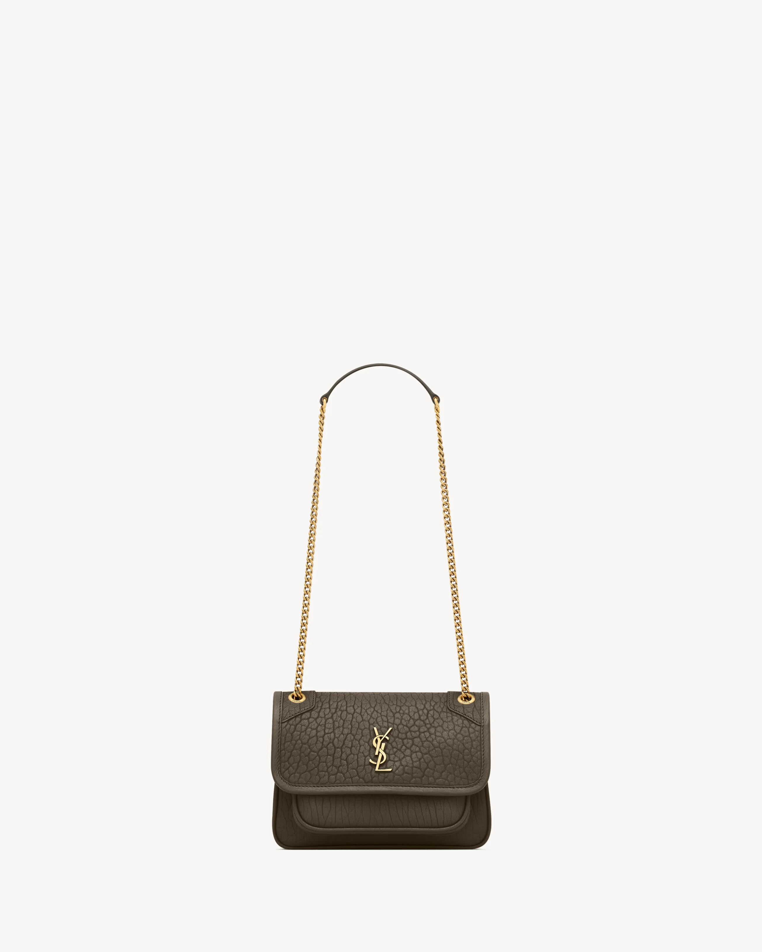THE MINI VERSION OF THE ICONIC NIKI. THIS PRACTICAL, LIGHTWEIGHT BAG FEATURES TWO MAIN COMPARTMENTS AND A BACK POCKET. A SLIDING CHAIN STRAP PROVIDES BOTH SHOULDER AND CROSSBODY CARRY OPTIONS. - LEATHER LINING - BRONZE-TONE HARDWARE - MAGNETIC SNAP CLOSURE - TWO MAIN COMPARTMENTS - ONE FLAT POCKET - ONE FLAT POCKET AT THE BACK - DIMENSIONS: 12.5 X 18 X 5 CM / 4.9" X 7.1" X 2" - SINGLE STRAP DROP: CM / 21.7" - FOLDED STRAP DROP: 30 CM / 11.8" - LAMBSKIN, BRASS - STYLE ID 828736AACYT3212 - MADE IN ITALY