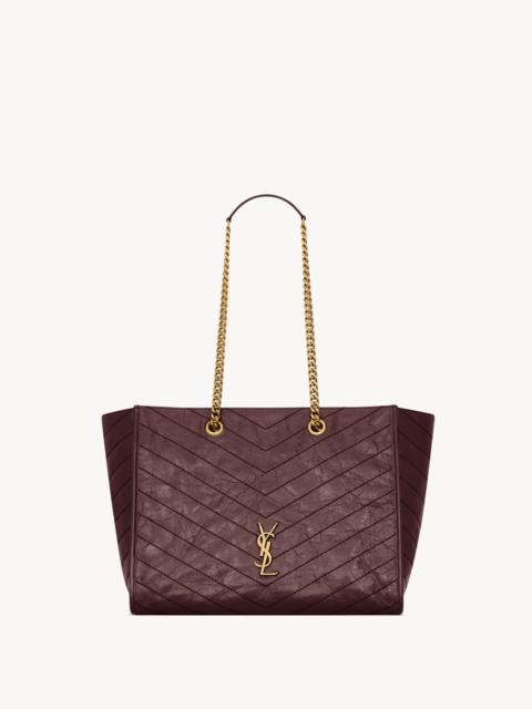 EAST/WEST SHOPPING BAG IN VINTAGE CALFSKIN, DECORATED WITH THE CASSANDRE AND CHEVRON TOPSTITCHING. THIS LIGHTWEIGHT, SPACIOUS BAG FEATURES CHAIN STRAPS FOR SHOULDER CARRY. - METAL-FREE TANNED LEATHER - COTTON LINING - SILVER-TONE HARDWARE - MAGNETIC SNAP-BUTTON CLOSURE - ONE ZIP POCKET - DIMENSIONS: 33 X 27 X 14 CM / 13" X 10.6" X 5.5" - STRAP DROP: 27 CM / 10.6" - CALFSKIN, BRASS - STYLE ID 8711510EN041000 - MADE IN ITALY