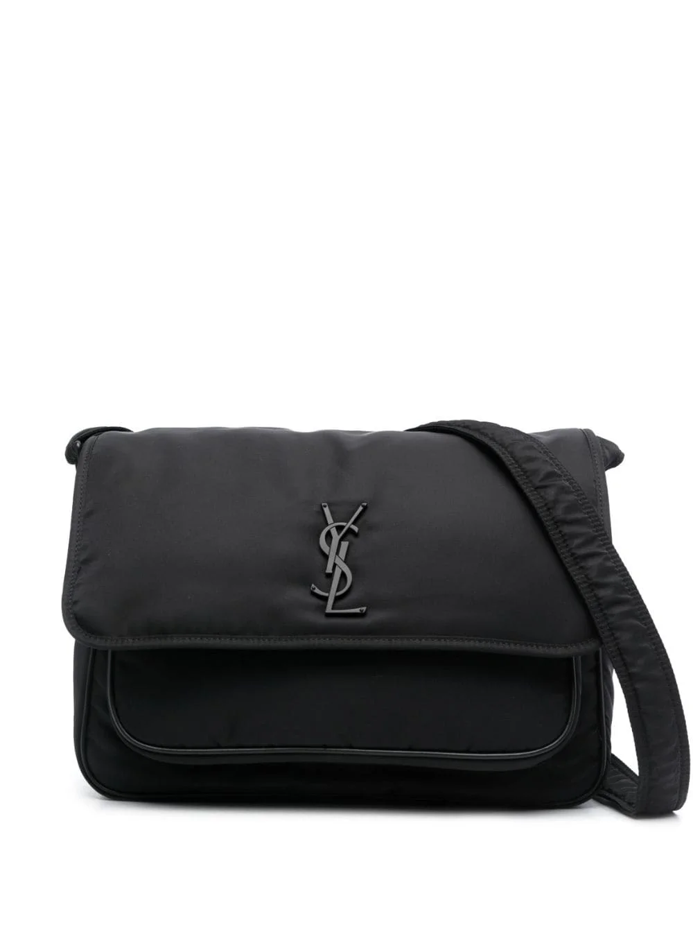 Niki YSL-plaque messenger bag Boasting the iconic YSL logo plaque in a tonal black colour, the Niki camera bag echoes Saint Laurent's timeless and refined aesthetic. The adjustable shoulder bag allows for versatile wear, while the main compartment and slip pokcet keep all the belongings organised. Highlights - Black - Calf leather - Signature ysl tonal logo plaque - Foldover top with magnetic fastening - Adjustable shoulder strap - Internal zip-fastening pocket - Partitioned compartment Made in Italy Composition Outer: Calf Leather 100%, Nylon 100% SIZE & FIT Model measurements Height 6 ft 2 in(1.89 m) Bust/Chest 38.97 in(99 cm) Hips 38.18 in(97 cm) Waist 32.28 in(82 cm) Measurement HEIGHT 9.05 in(23 cm) WIDTH 12.79 in(32.5 cm) STRAP 27.55 in(70 cm)