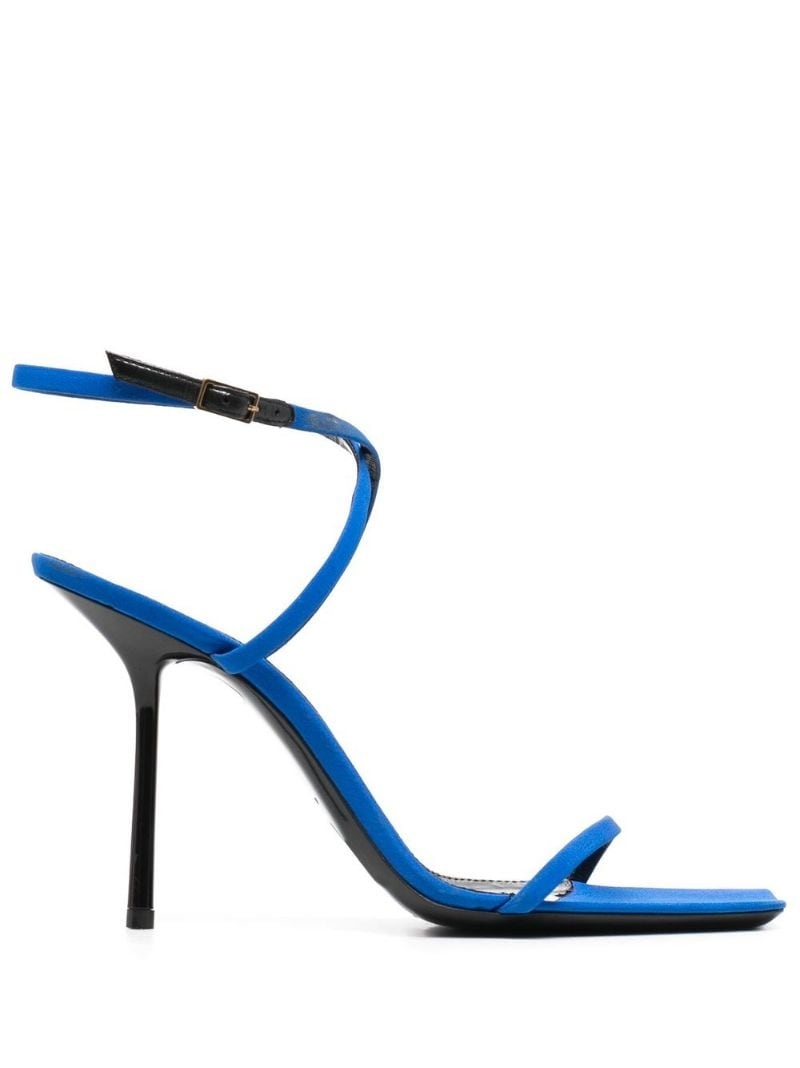 110mm square-toe leather sandals 110mm square-toe leather sandals from SAINT LAURENT featuring cobalt blue, leather, open toe, square toe, single toe strap, buckle-fastening ankle strap, branded leather insole, high stiletto heel and 110mm heel. Made in Italy Composition Sole: Leather 100% Lining: Leather 100% Outer: Fabric 100% SIZE & FIT Measurement HEEL 4.3 in(11 cm)