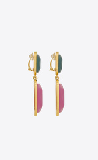 PAIR OF CLIP-ON OCTOGONAL EARRINGS. - 100% BRASS - CLIP-ON CLOSURE - SAINT LAURENT PARIS ENGRAVING - DIMENSIONS: 80 MM - STYLE ID 812857228 - MADE IN THAILAND