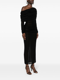 cowl neck fine-knit maxi dress Highlights - Black - Fine knit - Semi-sheer construction - Gathered detailing - Cowl neck - Long sleeves - Straight hem - Long length Made in Italy Composition Lyocell 80%, Wool 20% SIZE & FIT Model measurements Height 5 ft 9 in(1.76 m) Bust/Chest 32.28 in(82 cm) Hips 35.03 in(89 cm) Waist 24.8 in(63 cm) FittingInformation Designed for a slim fit that sits just away from the body offering a close yet comfortable fit Made from a lightweight non-stretch fabric, this piece offers minimal elasticity when worn This piece fits true to size – take your usual size Measurement SLEEVE LENGTH 24.48 in(62.2 cm) HIPS 32 in(81.3 cm) Length 57.99 in(147.3 cm) WAIST 25.98 in(66 cm) BUST 32 in(81.3 cm)