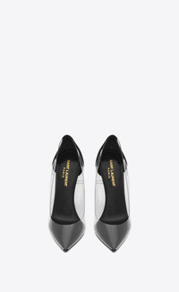 PUMPS WITH A STRUCTURED HEEL DECORATED WITH METAL YSL INITIALS AND FEATURING A LOW-CUT VAMP. - 100% CALFSKIN - LEATHER SOLE - TOTAL HEEL HEIGHT: 11 CM / 4.3 INCHES - STYLE ID 6997161TVAA1094 - MADE IN ITALY