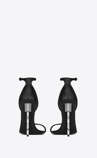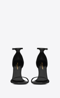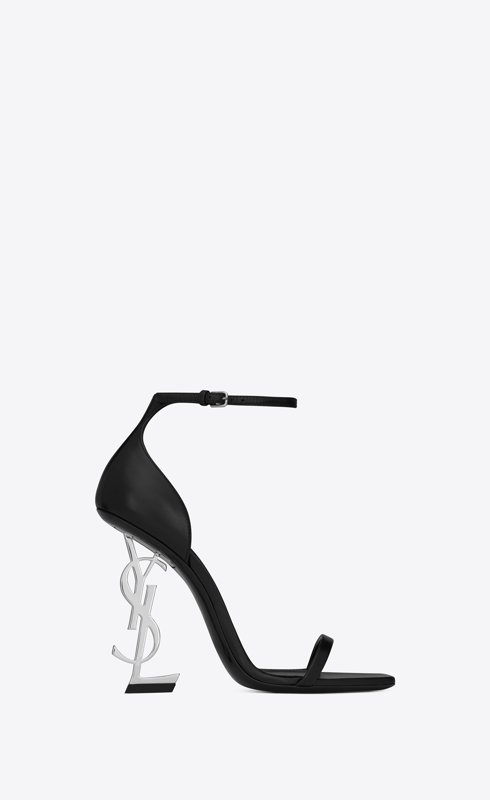 SQUARED-TOE SANDALS WITH AN ADJUSTABLE ANKLE STRAP, FEATURING A STRUCTURED HEEL DECORATED WITH METAL YSL INITIALS. TWO HEEL HEIGHTS AVAILABLE. - 100% LAMBSKIN - LEATHER SOLE - TOTAL HEEL HEIGHT: 11 CM / 4.3 INCHES - ADJUSTABLE ANKLE STRAP - HEEL IN SILVER-TONED METAL - STYLE ID 557662AAABN1000 - MADE IN ITALY