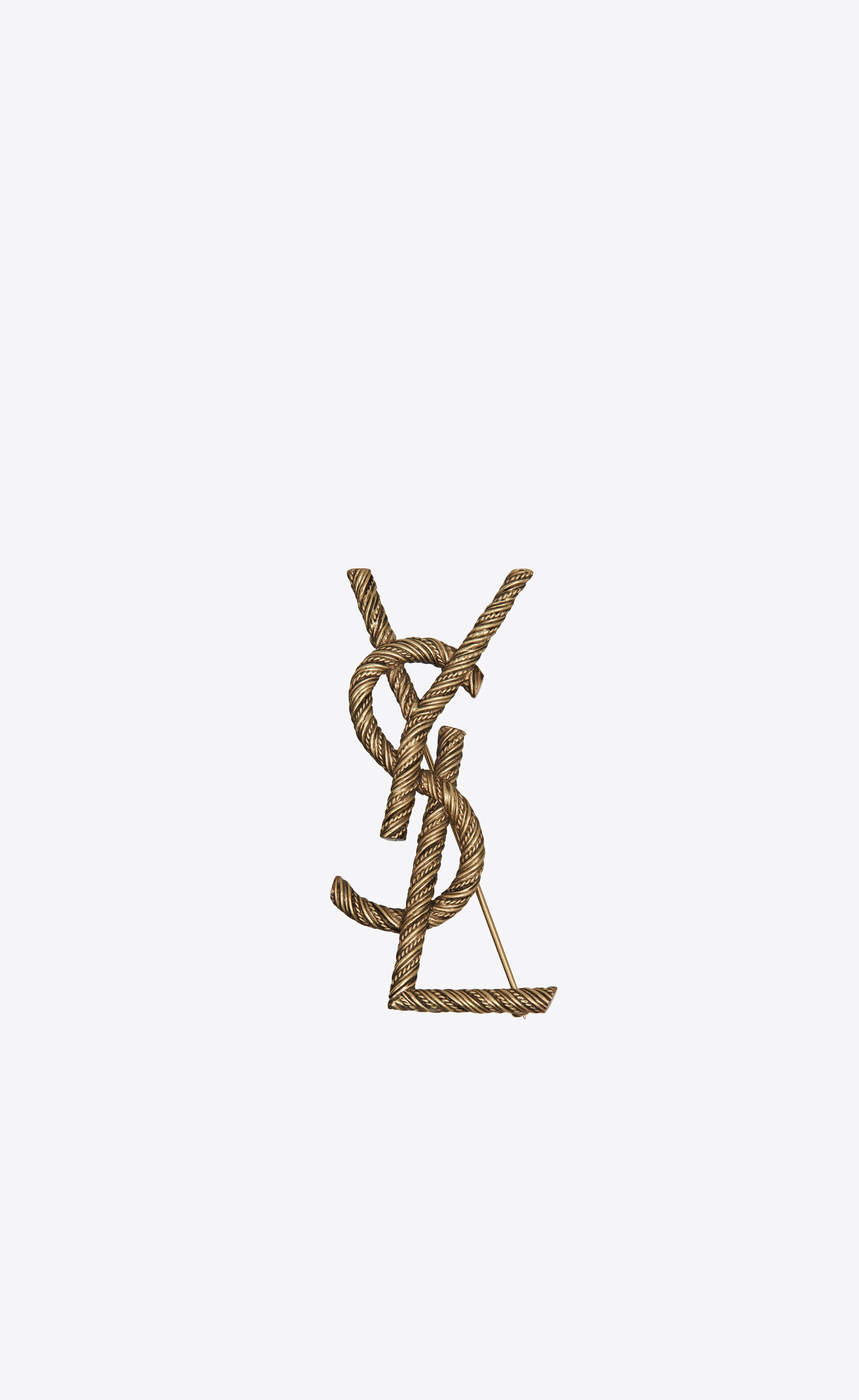 YSL MONOGRAM BROOCH WITH A NAUTICAL ROPE DESIGN. - 100% BRASS - PIN CLASP WITH SAFETY HOOK - STYLE ID 809453014 - MADE IN THAILAND