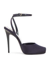 Details - Satin upper with leather trim and leather sole - Made in Italy - Ankle buckle closure - Leather footbed and lining - Square peep toe with stiletto heel - Approx 115mm/ 4.5 inch heel - This item is not available to ship to Indonesia - Our Style No. SLAU-WZ1325 - Manufacturer Style No. 808608-9QNAO-4035