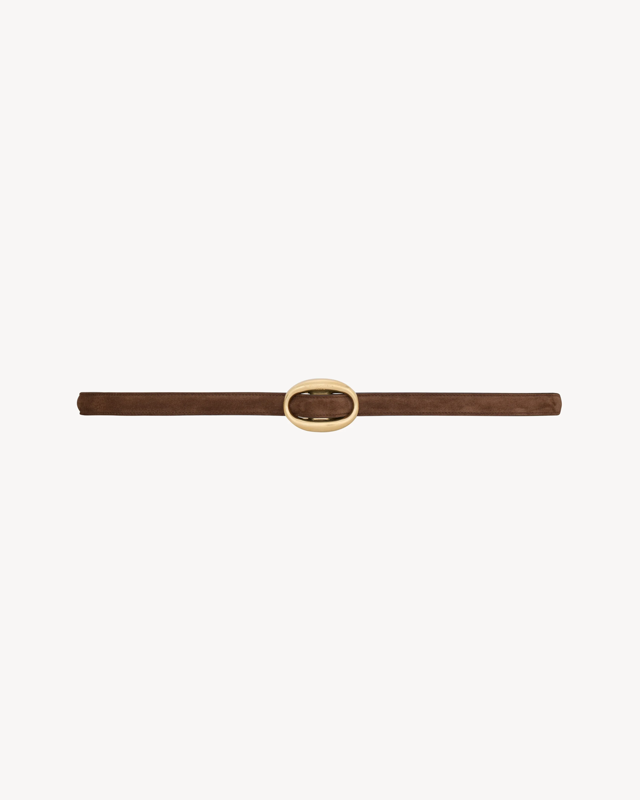 THIN BELT FEATURING AN OVAL BUCKLE ENGRAVED WITH THE SAINT LAURENT PARIS SIGNATURE. - GOLD-TONE HARDWARE - ADJUSTABLE BUCKLE - WIDTH: 1.5 CM / 0.6" - CALF LEATHER, BRASS - STYLE ID 7564091U80P2358 - MADE IN ITALY