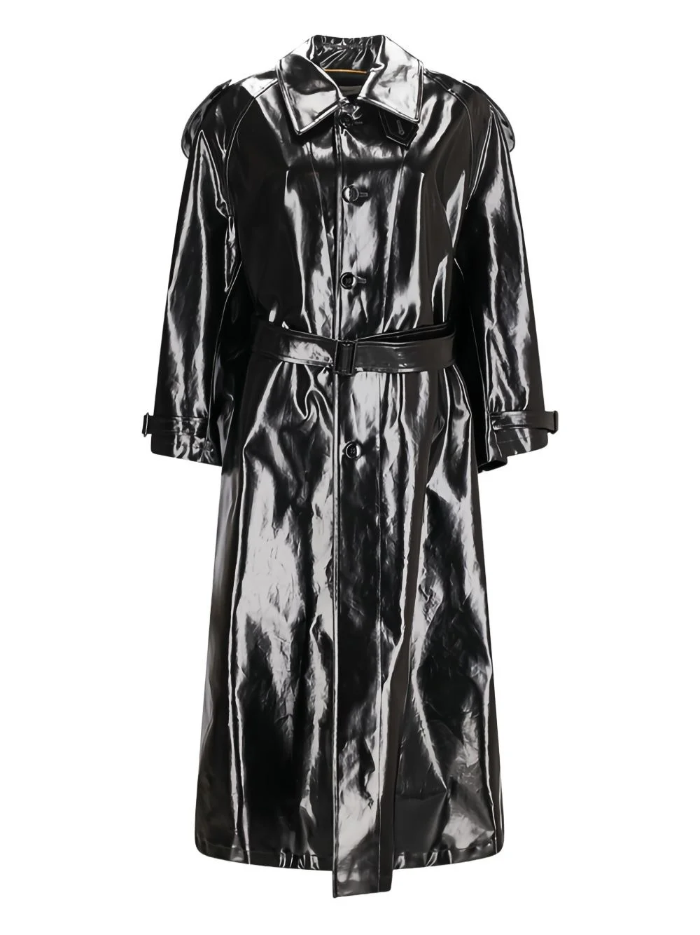 belted trench coat Highlights - Black - Button fastening - Belted fastening - Polo collar Made in Italy Composition Lining: Cupro 58%, Cotton 42% Outer: Cotton 100%, Polyurethane 100% Washing instructions Read Manufacturer Guidelines