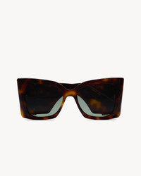 SUNGLASSES WITH OVERSIZED CAT-EYE FRAMES IN ACETATE, WITH NYLON LENSES AND A CASSANDRE ON WIDE TEMPLES. - OVERSIZED GOLD CASSANDRE ON THE TEMPLES 100% UVA/UVB PROTECTION DIMENSIONS: LENS: 54 MM / 2.1", BRIDGE: 18 MM/ 0.7", TEMPLE: 135 MM / 5.3" - ACETATE, NYLON - STYLE ID 736461Y99562301 - MADE IN ITALY