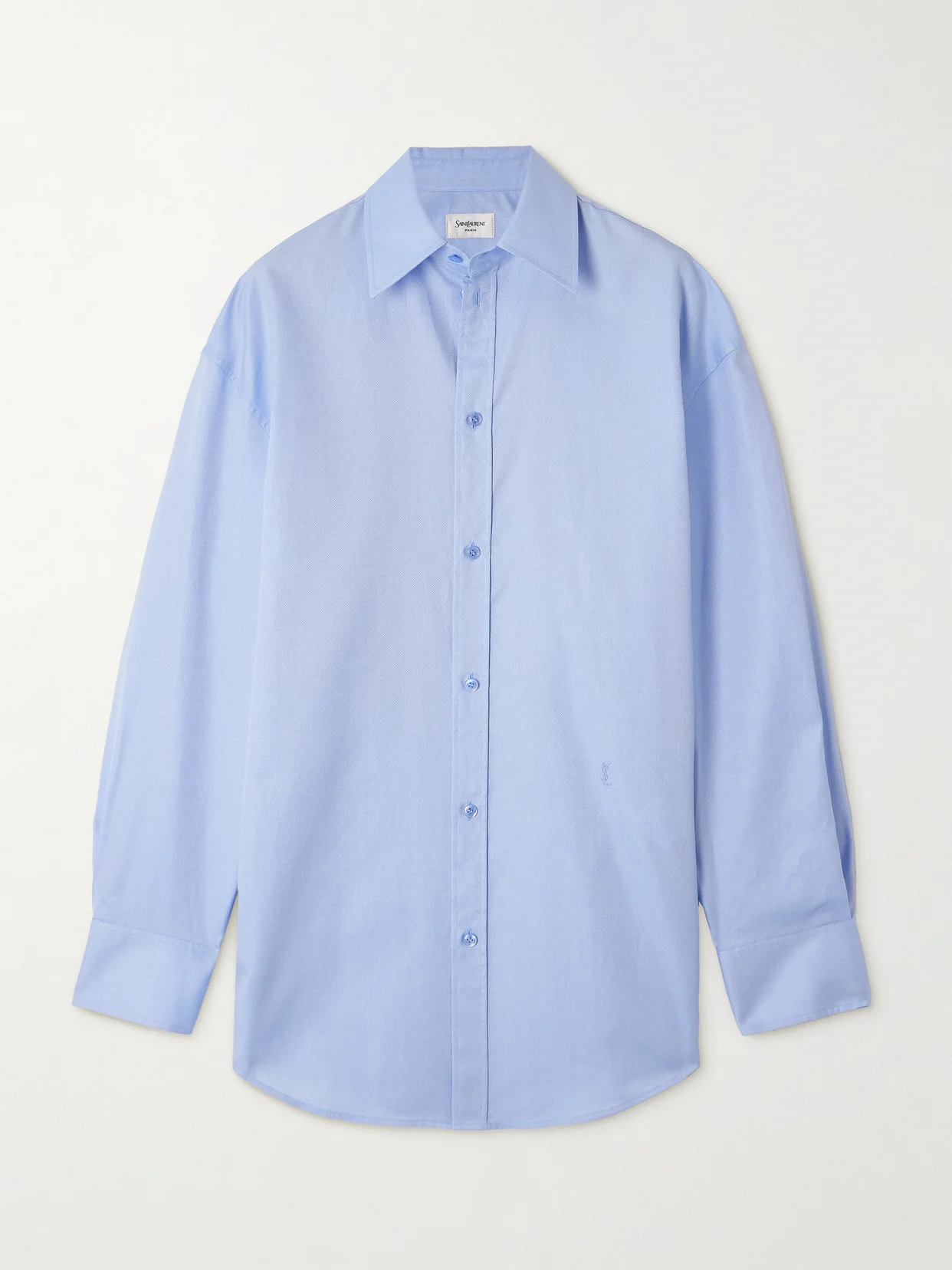 The cotton Oxford used to make SAINT LAURENT's shirt includes light-blue and white threads, highlighting the classic weave nicely. A truly classic design, it'll beautifully underpin a jacket, Le Smoking or otherwise.