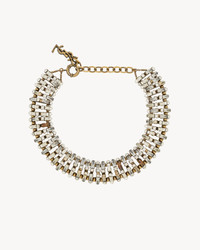 OVERSIZED TRIANGULAR CHAIN NECKLACE SET WITH ROUND AND EMERALD-CUT CRYSTALS. - ADJUSTABLE SPRING RING CLASP WITH CASSANDRE CHARM - SAINT LAURENT ENGRAVING - LENGTH: 40 + 10 CM / 15.7" + 3.9" - BRASS, GLASS - STYLE ID 850792Y15267594 - MADE IN FRANCE