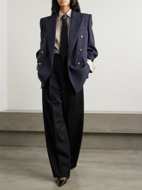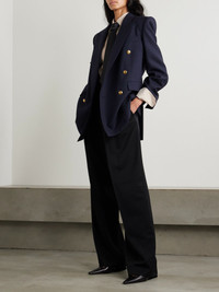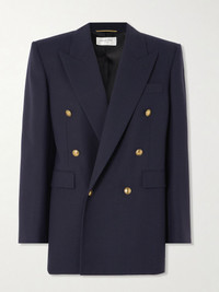 SAINT LAURENT's blazer is a shining example of the label's refined style. It's tailored in a roomy, double-breasted profile from grain de poudre wool and finished with gold-tone buttons at the front and cuffs - power dressing, in the coolest possible way. Size & Fit - Intended to be oversized; we recommend sizing down if you prefer a closer fit - Internal shoulder pads - Mid-weight, non-stretchy fabric - Model is 175cm/ 5'9" and is wearing a FR 36 Model measurements: - Bust: 81cm/ 32" - Waist: 62cm/ 24.5" - Hip: 89cm/ 35" Details & Care - Midnight-blue grain de poudre wool - Button fastenings through double-breasted front - 100% wool; lining: 100% silk - Dry clean
