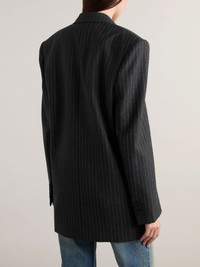 SAINT LAURENT’s blazer is the epitome of timeless sophistication. Inspired by the founder's personal style, it's made from wool-flannel with elongating pinstripes and has an oversized shape with a double-breasted front. Peak lapels draw the eye to the padded shoulders. Size & Fit - Fits true to size, take your normal size - Take the next size down if you wish to achieve a closer fit - Tailored for a loose fit - Internal shoulder pads - Mid-weight, non-stretchy fabric - Model is 177cm/ 5'10" and is wearing a FR 36 Model measurements: - Bust: 81cm/ 32” - Waist: 66cm/ 26” - Hip: 90cm/ 35.5” Details & Care - Dark-gray and white wool-flannel - Button fastenings through double-breasted front - 100% wool; lining1: 97% cotton, 3% elastane; lining2: 100% silk