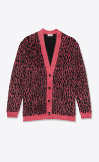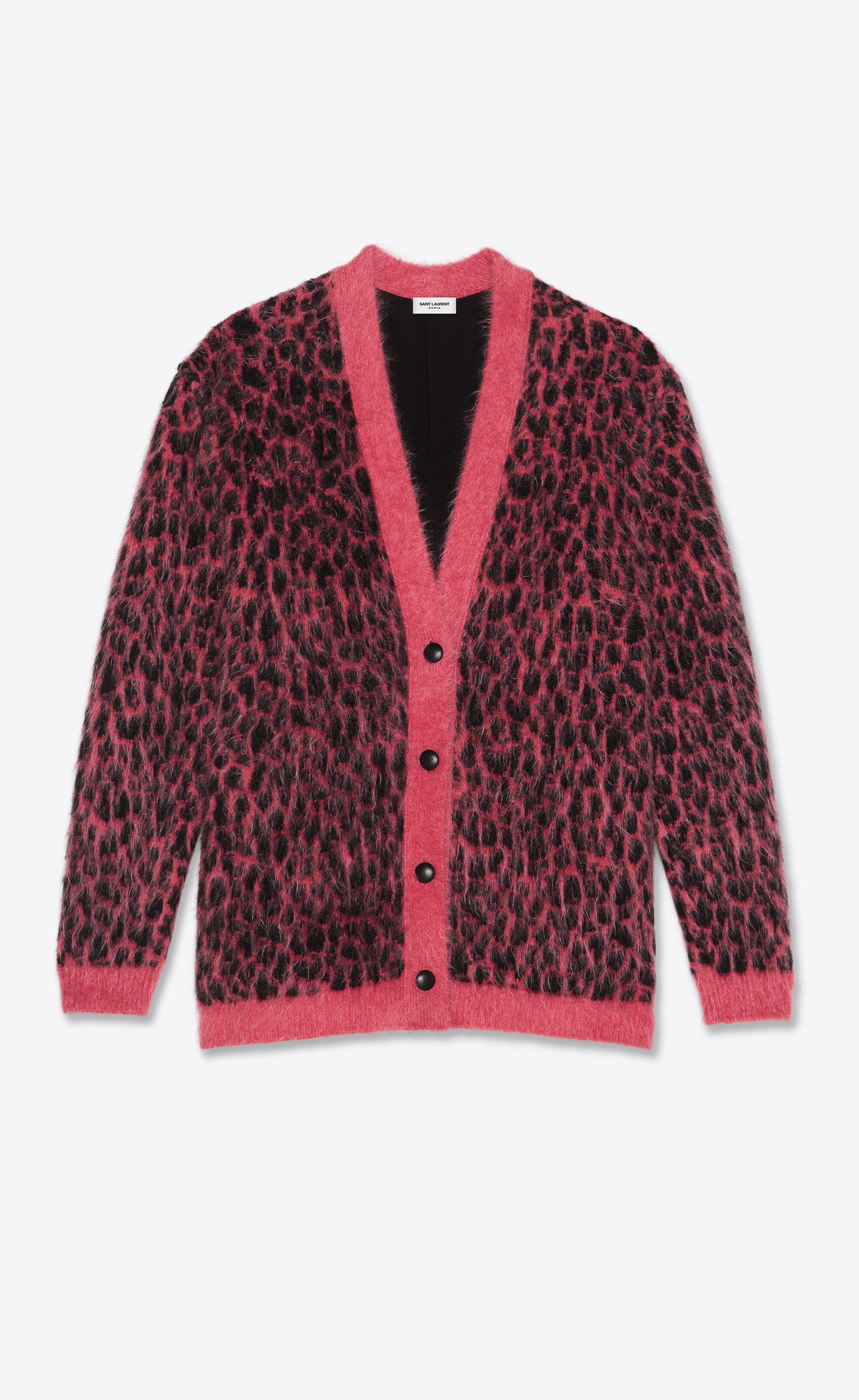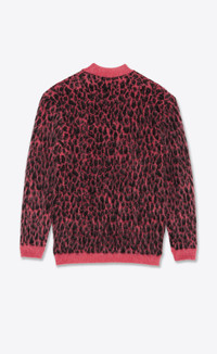 oversized knitted cardigan in brushed wool and mohair leopard-print jacquard