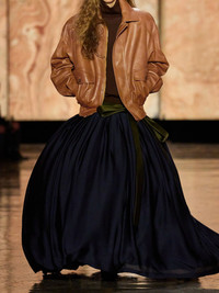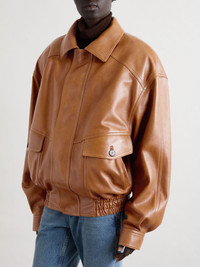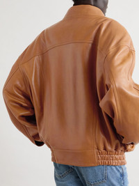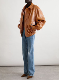 SAINT LAURENT's leather jacket debuted on the Fall '25 runway, where it was layered over a voluminous skirt - what better way to add effortless cool to a sophisticated outfit? It's designed for a loose fit and has an elasticated hem and sizable button-fastening flap pockets. The concealed placket delivers a streamlined finish. Size & Fit - Fits true to size, take your normal size - Designed for a loose fit - Partially elasticated at the waist for a flexible fit - Supple, non-stretchy leather - French sizing Details & Care - Tan leather - Concealed snap and zip fastening through front - 100% leather (Lamb) - Fully lined - Dry clean