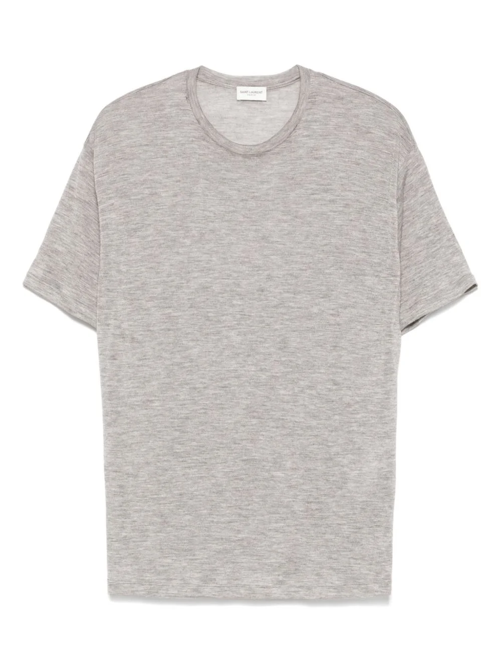 fine-knit T-shirt Highlights - Heather grey - Crew neck - Short sleeves - Straight hem Made in Italy Composition Wool 70%, Silk 30% SIZE & FIT Model measurements Height 5 ft 9 in(1.75 m) Bust/Chest 31.88 in(81 cm) Hips 34.64 in(88 cm) Waist 24.01 in(61 cm) FittingInformation Designed to be unstructured, offering a loose fit throughout Made from a lightweight non-stretch fabric, this piece offers minimal elasticity when worn