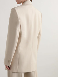 SAINT LAURENT's Creative Director Anthony Vaccarello often channels the founder’s signature personal style, resulting in oversized tailoring and lots of layers. This blazer is impeccably cut from wool and has padded shoulders and a longline shape complete with peak lapels. Size & Fit - Intended to be oversized; we recommend sizing down if you prefer a closer fit - Internal shoulder pads - Mid-weight, non-stretchy fabric - Model is 177cm/ 5'10" and is wearing a FR 36 Model measurements: - Bust: 81cm/ 32” - Waist: 66cm/ 26” - Hip: 90cm/ 35.5” Details & Care - Ecru wool - Button fastening at front - 100% wool; lining: 100% silk