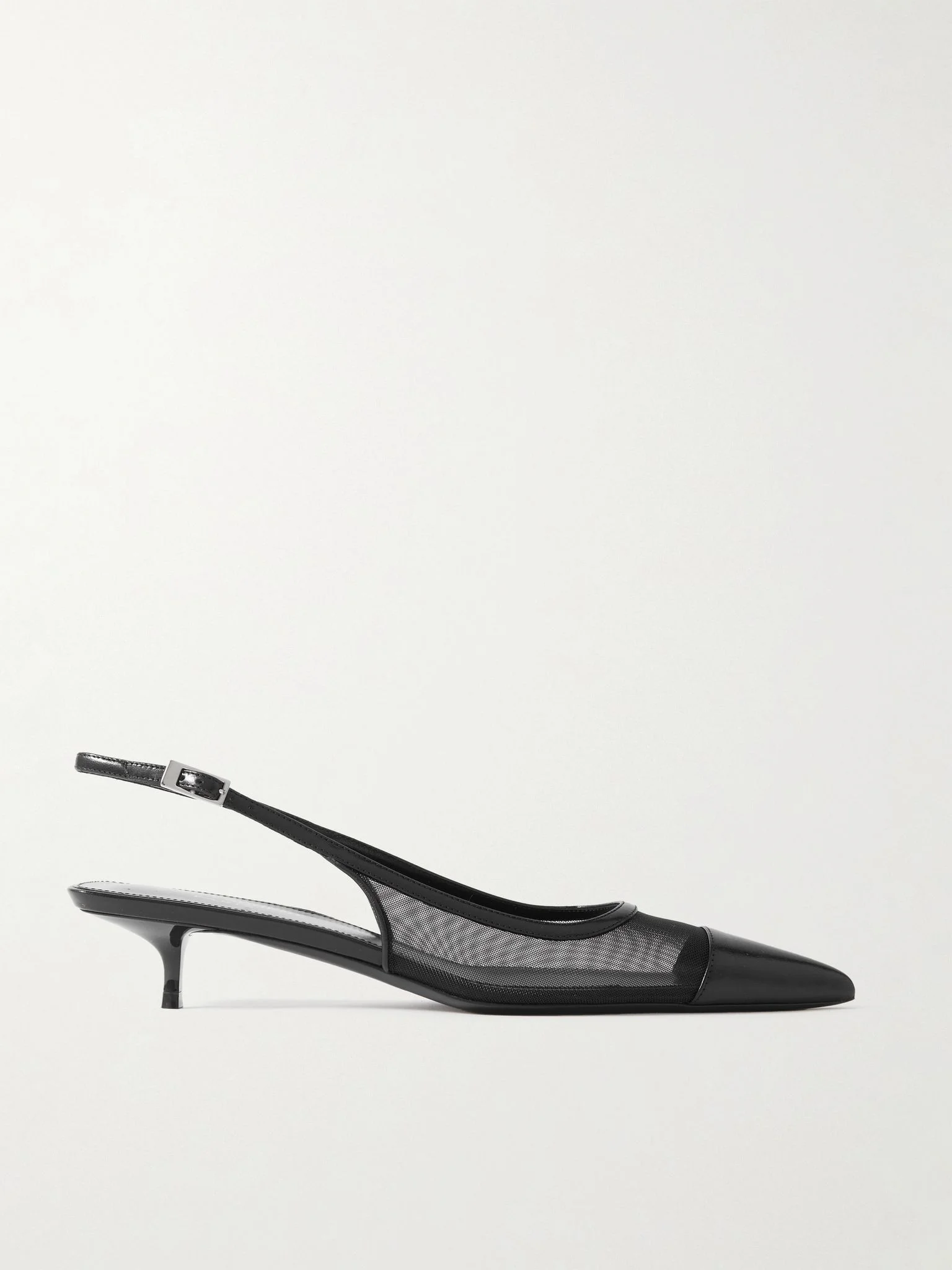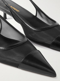 The slim kitten heels of SAINT LAURENT's 'Oxalis' pumps always feel elegant, and make barely any concession when it comes to comfort. They're made from mesh and have leather trims and slingback straps. Size & Fit Fits true to size, please refer to SAINT LAURENT size guide below: - EU 36 = UK 3/ US 6/ IT 36/ FR 37 - EU 36.5 = UK 3.5/ US 6.5/ IT 36.5/ FR 37.5 - EU 37 = UK 4/ US 7/ IT 37/ FR 38 - EU 37.5 = UK 4.5/ US 7.5/ IT 37.5/ FR 38.5 - EU 38 = UK 5/ US 8/ IT 38/ FR 39 - EU 38.5 = UK 5.5/ US 8.5/ IT 38.5/ FR 39.5 - EU 39 = UK 6/ US 9/ IT 39/ FR 40 - EU 39.5 = UK 6.5/ US 9.5/ IT 39.5/ FR 40.5 - EU 40 = UK 7/ US 10/ IT 40/ FR 41 - EU 40.5 = UK 7.5/ US 10.5/ IT 40.5/ FR 41.5 - EU 41 = UK 8/ US 11/ IT 41/ FR 42 - EU 41.5 = UK 8.5/ US 11.5/ IT 41.5/ FR 42.5 - EU 42 = UK 9/ US 12/ IT 42/ FR 43 Details & Care - Heel measures approximately 30 mm/ 1 inch - Black mesh and leather (Lamb) - Buckle-fastening slingback strap