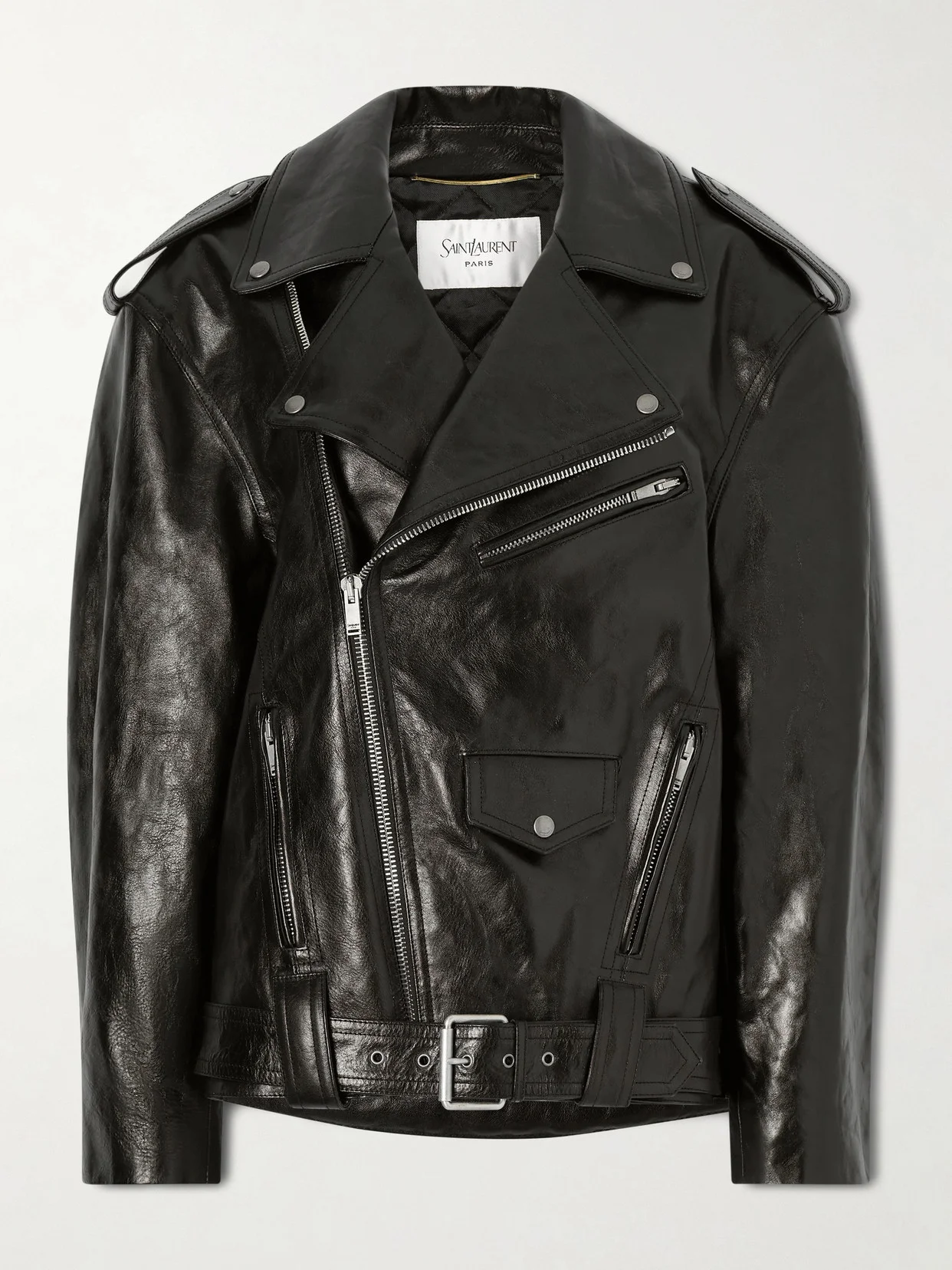 SAINT LAURENT always uses leather in the coolest ways. Made in Italy, this glossy biker jacket has curved shoulders that nod to the label's love of the '80s. Take a cue from the Spring '26 runway and style yours over a statement blouse.