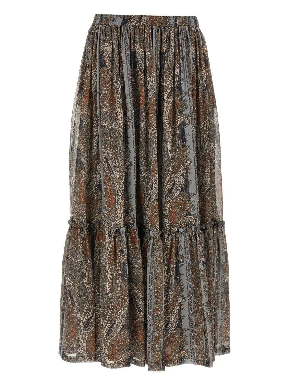 paisley-print ruffled skirt Highlights - Grey - Paisley print - Tiered ruffle - Elasticated waistband - Silk construction Made in Italy Composition Silk 100% Washing instructions Dry Clean Only