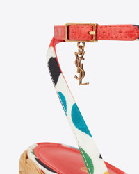 PEEP-TOE ESPADRILLES WITH AN ALMOND TOE AND WEDGE HEEL, FEATURING AN ADJUSTABLE WRAPAROUND STRAP WITH A YSL MONOGRAM CHARM. - 100% SILK - LEATHER SOLE - ADJUSTABLE BUCKLE CLOSURE - TOTAL HEEL HEIGHT: 9.5 CM / 3.7 INCHES - STYLE ID 689017AAAHR9053 - MADE IN ITALY