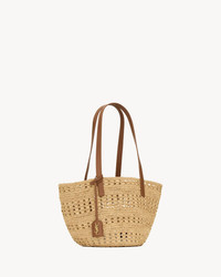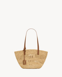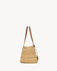 BASKET BAG WITH LEATHER HANDLES, FEATURING A LEATHER-ENCASED KEY HOLDER DECORATED WITH THE CASSANDRE. - DIMENSIONS: 20/44 X 22 X 20 CM - HANDLE DROP: 26 CM - GOLD-TONED METAL HARDWARE - RAFFIA - STYLE ID 761461GAAAC2080 - MADE IN MADAGASCAR