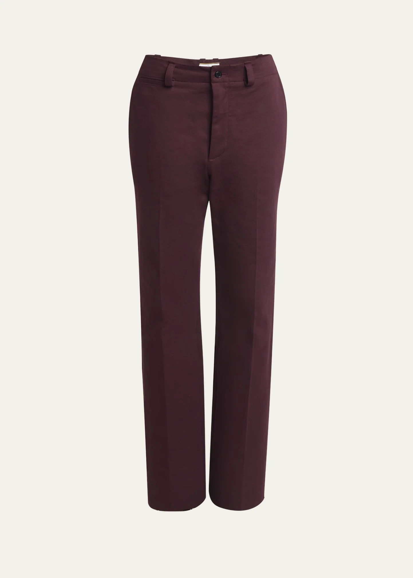 Mid-Rise Straight-Leg Ankle Cotton Pants
