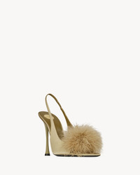 SLINGBACK SANDALS WITH A FLARED STILETTO HEEL AND SQUARE TOE WITH FEATHER POMPOM. - CERTIFIED VISCOSE AND CERTIFIED SILK - LEATHER SOLE - ROUND SAINT LAURENT-ENGRAVED METAL PLAQUE ON THE INSOLE - ELASTICIZED SLINGBACK STRAP - TOTAL HEEL HEIGHT: 11 CM / 4.3 INCHES - VISCOSE, SILK - STYLE ID 8057579QNBI2974 - MADE IN ITALY