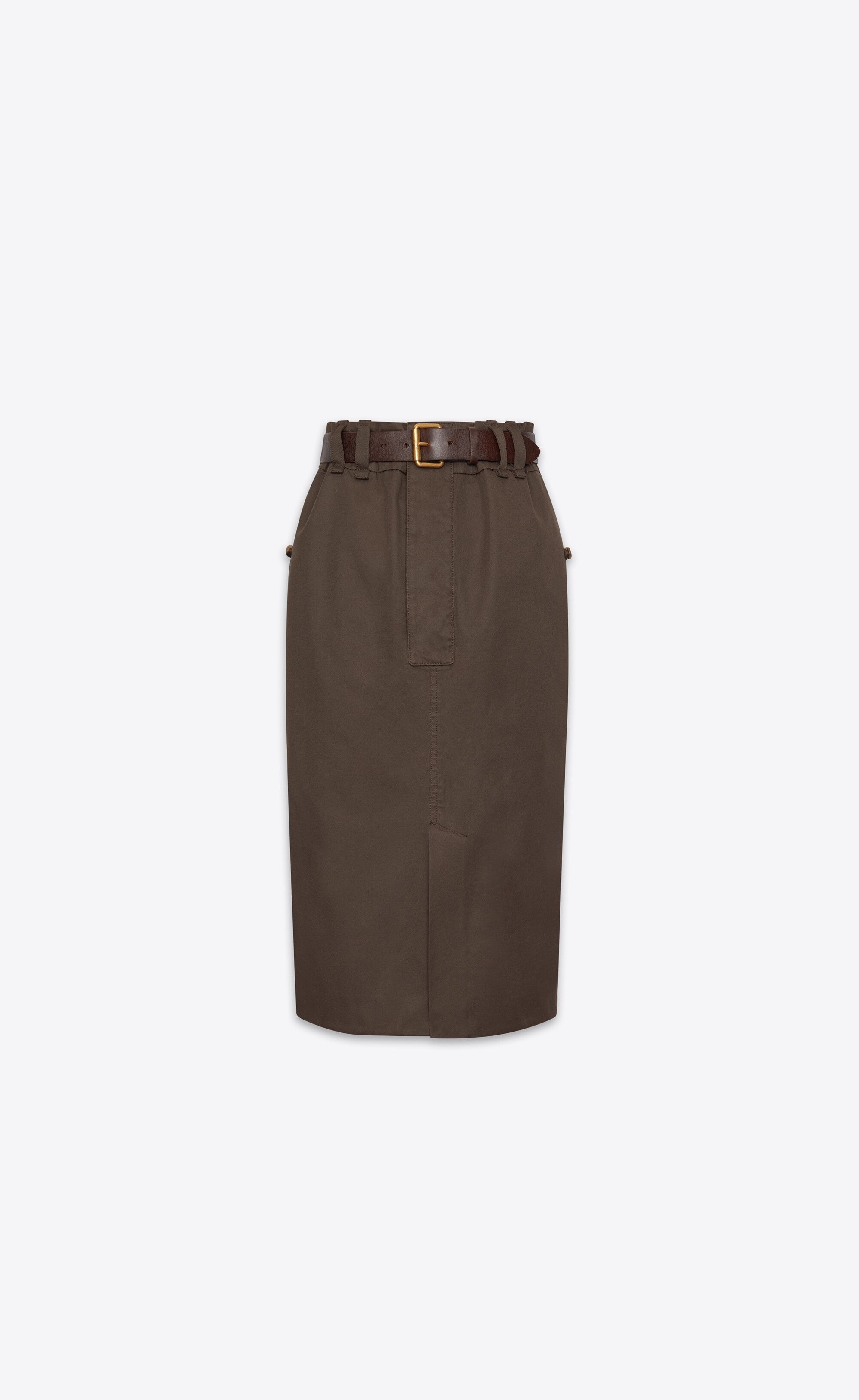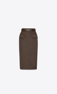 BELTED PENCIL SKIRT, FEATURING A FRONT SLIT AND BACK FLAP POCKETS. - 100% COTTON - BUTTON FLY - TWO JETTED POCKETS WITH BUTTON AT THE SIDES - TWO JETTED POCKETS WITH SNAP-BUTTON FLAP AT THE BACK - WAISTBAND WITH BELT LOOPS - REMOVABLE PIN-BUCKLE LEATHER BELT - FRONT SLIT - STYLE ID 793675Y04VW7073 - MADE IN ITALY
