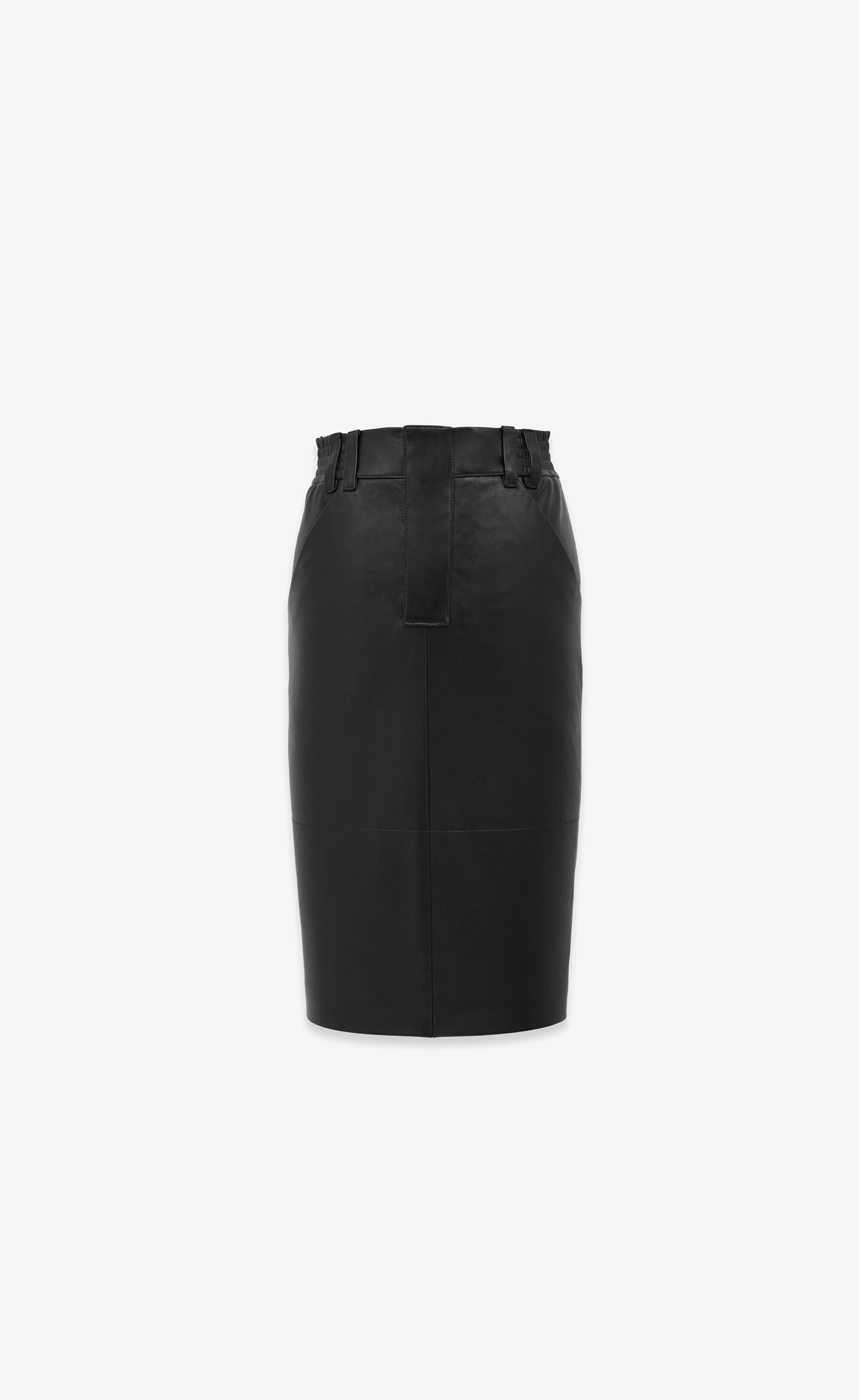 HIGH-WAISTED PENCIL SKIRT WITH BACK CARGO POCKETS. - 100% LAMBSKIN - SILK LINING - CONCEALED FRONT BUTTON CLOSURE WITH ZIP FLY - TWO SLASH POCKETS AT THE FRONT - TWO BELLOW POCKETS WITH FLAP AT THE BACK - WAISTBAND WITH BELT LOOPS - STYLE ID 803422YC2TE1000 - MADE IN ITALY