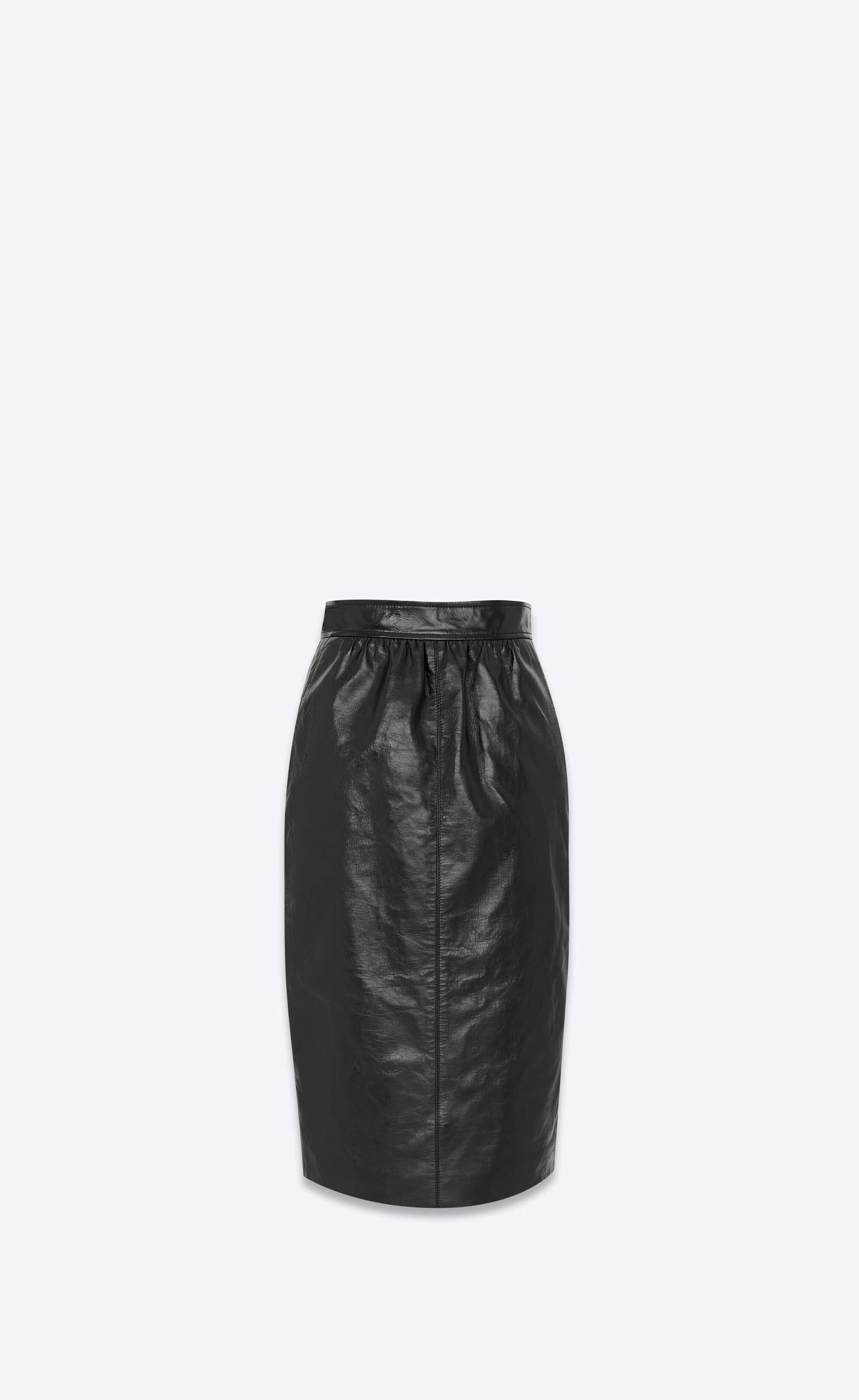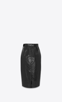 PENCIL SKIRT WITH A GATHERED WAIST, FEATURING A FRONT SLIT AND SLASH POCKETS. - 100% CALFSKIN LEATHER - SILK LINING - CONCEALED SIDE ZIP CLOSURE WITH BUTTON TAB - TWO SLASH POCKETS AT THE SIDE - FRONT SLIT - STYLE ID 760867YCOF21000 - MADE IN ITALY