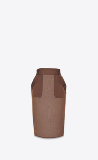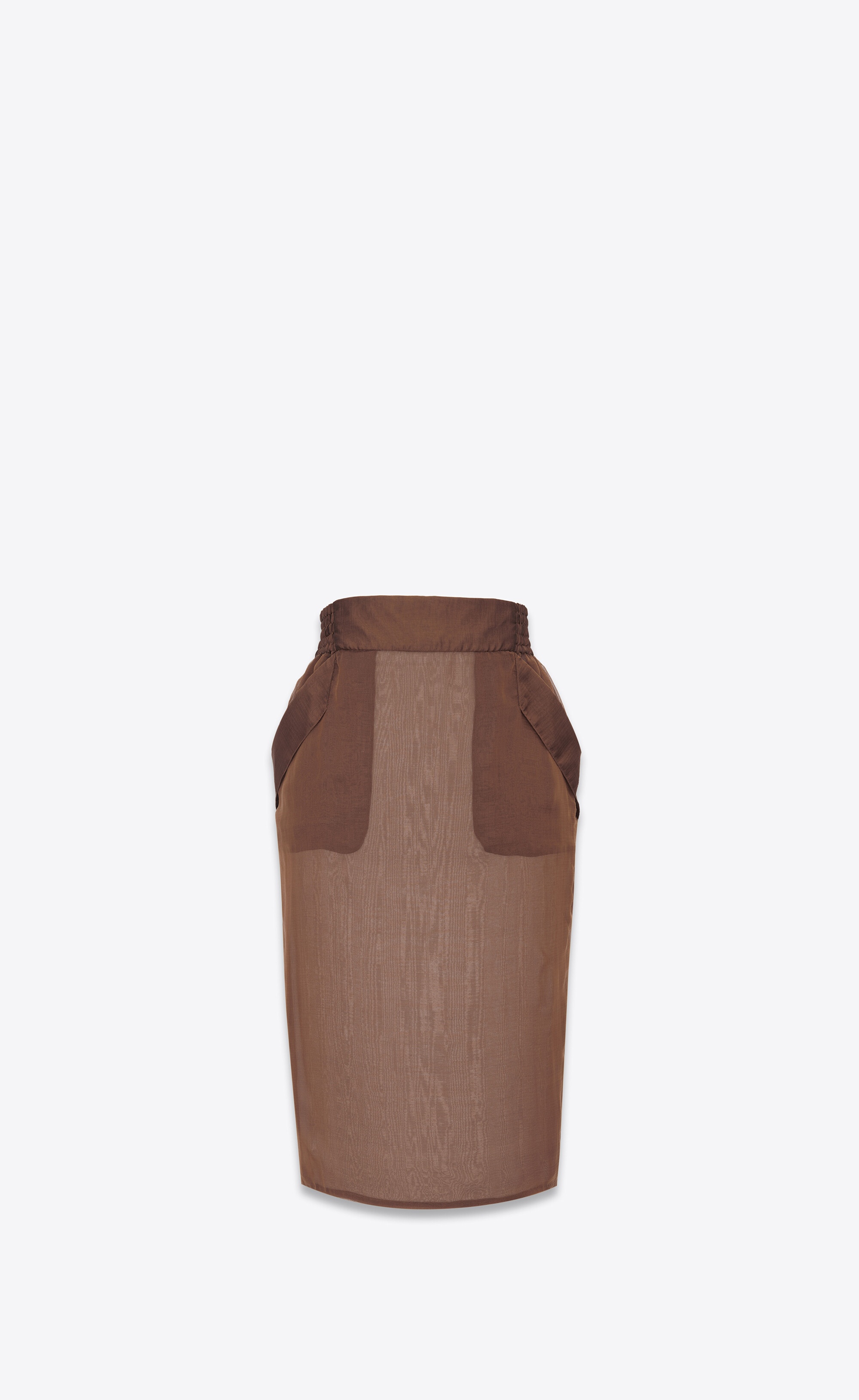 PENCIL SKIRT WITH AN ELASTICIZED WAIST AND WELTED SLASH POCKETS. THIS SKIRT COMES WITH A MATCHING TONE-ON-TONE TANGA. RETURNS WILL ONLY BE ACCEPTED IF THE TANGA HAS NOT BEEN TRIED ON. - 100% SILK - CONCEALED BACK ZIP CLOSURE - TWO WELTED SLASH POCKETS AT THE SIDE - ELASTICIZED WAISTBAND - SINGLE BACK VENT - THIS SKIRT COMES WITH A MATCHING TONE-ON-TONE TANGA. - STYLE ID 769270Y3F582265 - MADE IN ITALY