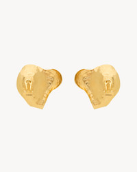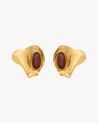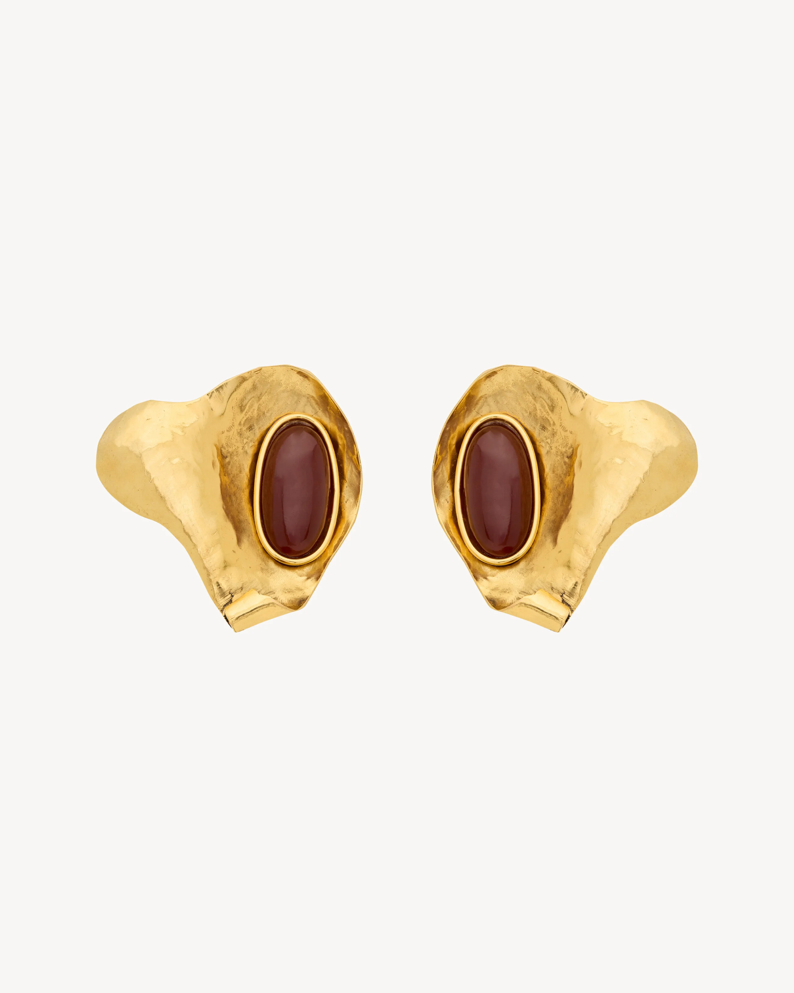 HAMMERED PETAL EARRINGS WITH A BEZEL-SET OVAL CABOCHON. - CLIP-ON CLOSURE - SAINT LAURENT ENGRAVING - LENGTH: 6 CM / 2.4" - WIDTH: 5.7 CM / 2.2" - BRASS, RESIN - STYLE ID 830757Y15917423 - MADE IN ITALY