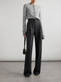 You can tell the superior quality of SAINT LAURENT's pants just by a quick glance - they're impeccably tailored from cashmere-twill that drapes beautifully. Designed to sit high on the waist, they have wide, pooling legs with sharp pleats and pressed creases. Wear them to the office or nice dinners. Size & Fit - Fits true to size, take your normal size - High-rise, cut for a wide-leg fit - Long in length, may wish to alter - Mid-weight, non-stretchy fabric - Model is 177cm/ 5'10" and is wearing a FR 36 Details & Care - Dark-gray cashmere-twill - Concealed hook, button and zip fastening at front - 100% cashmere