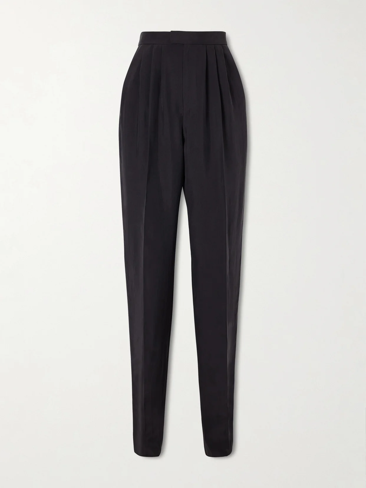 You can always rely on SAINT LAURENT for chic tailoring with serious style mileage - the late Jane Birkin wore her suits for years. Certain to be seen on the streets of Paris, these pants have been made in Italy from silk-habotai with triple pleats through the straight legs.