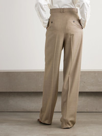 Yves Saint Laurent was renowned for wearing sophisticated outfits consisting of the same formula: a suit, tie and aviator sunglasses. Anthony Vaccarello nods to the uniform with his Spring '25 collection for SAINT LAURENT, designing sharp tailoring that will always remain in style. These pants are made from wool-canvas and have pleated legs and a high rise. Wear them with the matching blazer. Size & Fit - Fits true to size, take your normal size - High-rise, intended for a wide-leg fit - Unfinished hems; can be altered to a suitable length - Mid-weight, non-stretchy fabric - Model is 180cm/ 5'11" and is wearing a FR 36 Model measurements: - Bust: 75cm/ 29.5" - Waist: 60.5cm/ 24" - Hip: 88.5cm/ 35" Details & Care - Beige wool-canvas - Concealed button, hook and zip fastening at front - 100% wool - Dry clean