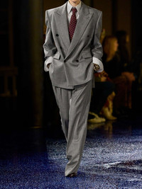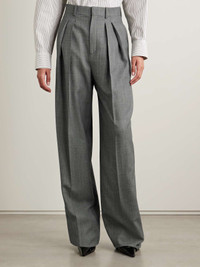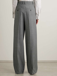 EDITORS'NOTES Yves Saint Laurent was renowned for wearing sophisticated outfits consisting of the same formula: a suit, tie and aviator sunglasses. Anthony Vaccarello nods to the uniform with his Spring '25 collection for SAINT LAURENT, designing sharp tailoring that will always remain in style. These pants are made from wool and have pleated legs and a high rise. Wear them with the matching blazer. SIZE & FIT Model measurements: - Fits true to size, however those who are between sizes should take the larger size - High-rise, designed for a wide-leg fit - Unfinished hems; can be altered to a suitable length - Mid-weight, non-stretchy fabric - Model is 175cm/ 5'9" and is wearing a FR 36 - Bust: 81cm/ 31.75" - Waist: 63cm/ 24.75" - Hip: 91cm/ 36" DETAILS & CARE - Black and white wool - Concealed button, hook and zip fastening at front - 100% wool; pocket lining: 97% cotton, 3% elastane - Dry clean