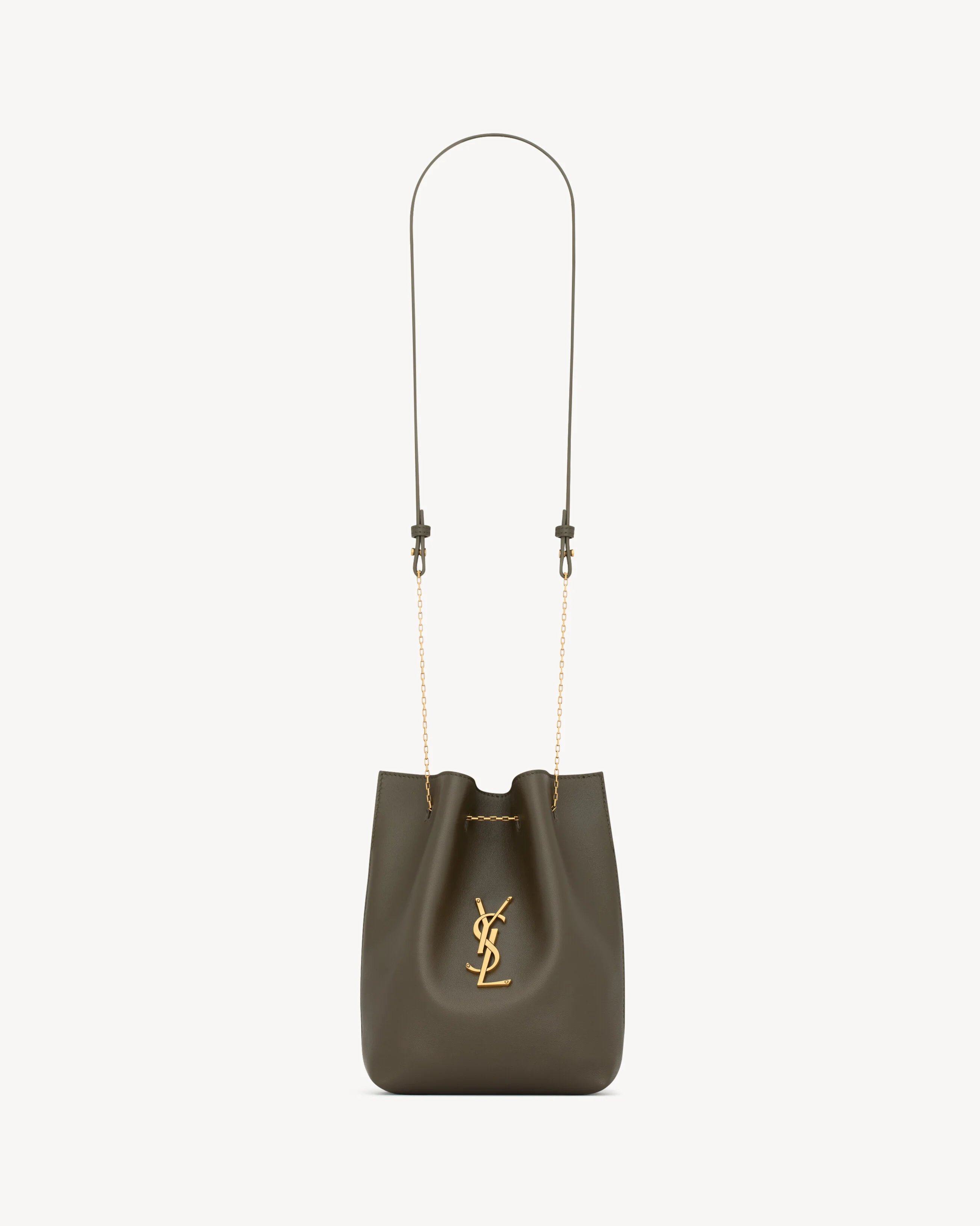POUCH IN SUPPLE LAMBSKIN, DECORATED WITH THE CASSANDRE. THIS LIGHTWEIGHT BAG MAY BE CARRIED BY HAND WITH ITS DELICATE CHAIN OR WORN ON THE SHOULDER WITH THE DETACHABLE LEATHER STRAP. - LEATHER LINING - BRONZE-TONE HARDWARE - DRAWSTRING CLOSURE - ONE FLAT POCKET - DIMENSIONS: 20 X 24 X 3 CM / 7.9" X 9.4" X 1.2" - STRAP DROP: 46 CM / 18.1" - LAMBSKIN, BRASS - STYLE ID 8010701EL0W3212 - MADE IN ITALY