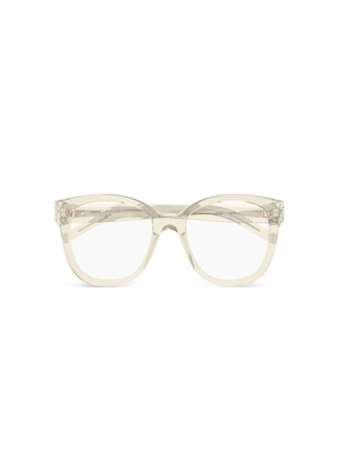 polished-effect oversize-frame glasses black acetate polished effect clear lenses oversize frame raised bridge straight arms curved tips These glasses come with a protective case. Made in Italy Composition Acetate 100% SIZE & FIT Measurement Arm Length 5.51 in(14 cm) Bridge Width 0.74 in(1.9 cm) Lens Diameter 2.12 in(5.4 cm) Total Width 5.66 in(14.4 cm)