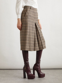 Prince of Wales silk and cashmere-blend tweed wide-leg shorts Brown
