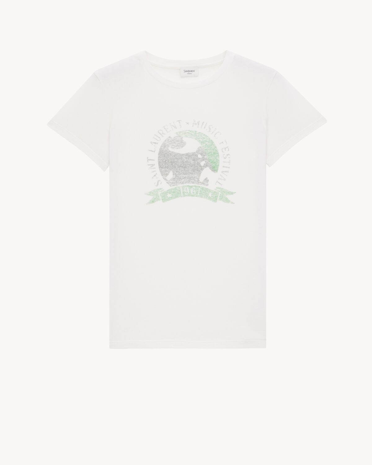 SHORT-SLEEVE CREWNECK T-SHIRT MADE WITH CERTIFIED COTTON, FEATURING A 1961 SAINT LAURENT MUSIC FESTIVAL PRINT ON THE CHEST. - CERTIFIED COTTON - CREWNECK - 100% COTTON - STYLE ID 817047Y37YJ9010 - MADE IN ITALY