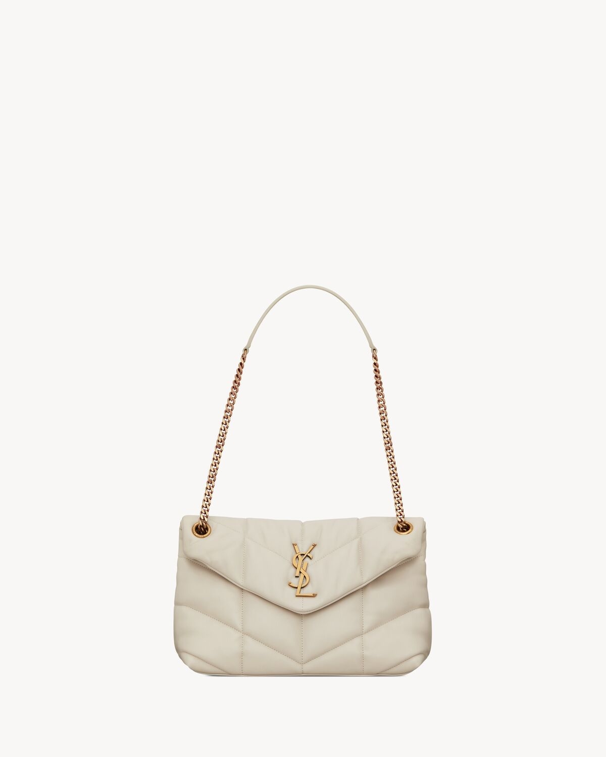 THE ICONIC LOULOU IN PUFFER VERSION, WITH CHEVRON QUILT OVERSTITCHING. FEATURING A SLIDING CHAIN STRAP THAT CAN BE WORN ON THE SHOULDER OR CROSSBODY. - GROSGRAIN LINING - LIGHT BRONZE METAL HARDWARE - MAGNETIC SNAP TAB - ONE INTERIOR ZIPPED POCKET - DIMENSIONS: 11.4 X 6.6 X 4.3 INCHES - CHAIN LENGTH: 11 TO 20 INCHES - LAMBSKIN - STYLE ID 5774761EL079207 - MADE IN ITALY