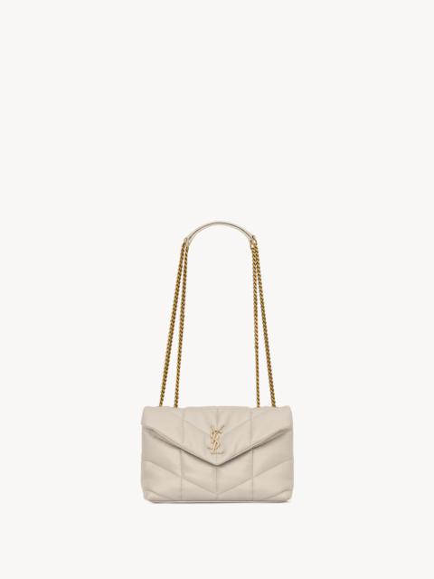 THE ICONIC LOULOU PUFFER IN A MINI VERSION. MADE OF SOFT NAPPA LAMBSKIN WITH CHEVRON QUILTING, IT FEATURES A SLIDING CHAIN FOR WEARING IT ON THE SHOULDER OR CROSSBODY. - GROSGRAIN LINING - LIGHT BRONZE BRASS HARDWARE - MAGNETIC SNAP TAB - INTERIOR ZIPPED POCKET - TWO CARD SLOTS - DIMENSIONS: 23 X 15.5 X 8.5 CM /9 X 6.1 X 3.3 INCHES - CHAIN LENGTH: 29 TO 55 CM /11.4 TO 21.7 INCHES - LAMBSKIN - STYLE ID 7593371EL001000 - MADE IN ITALY