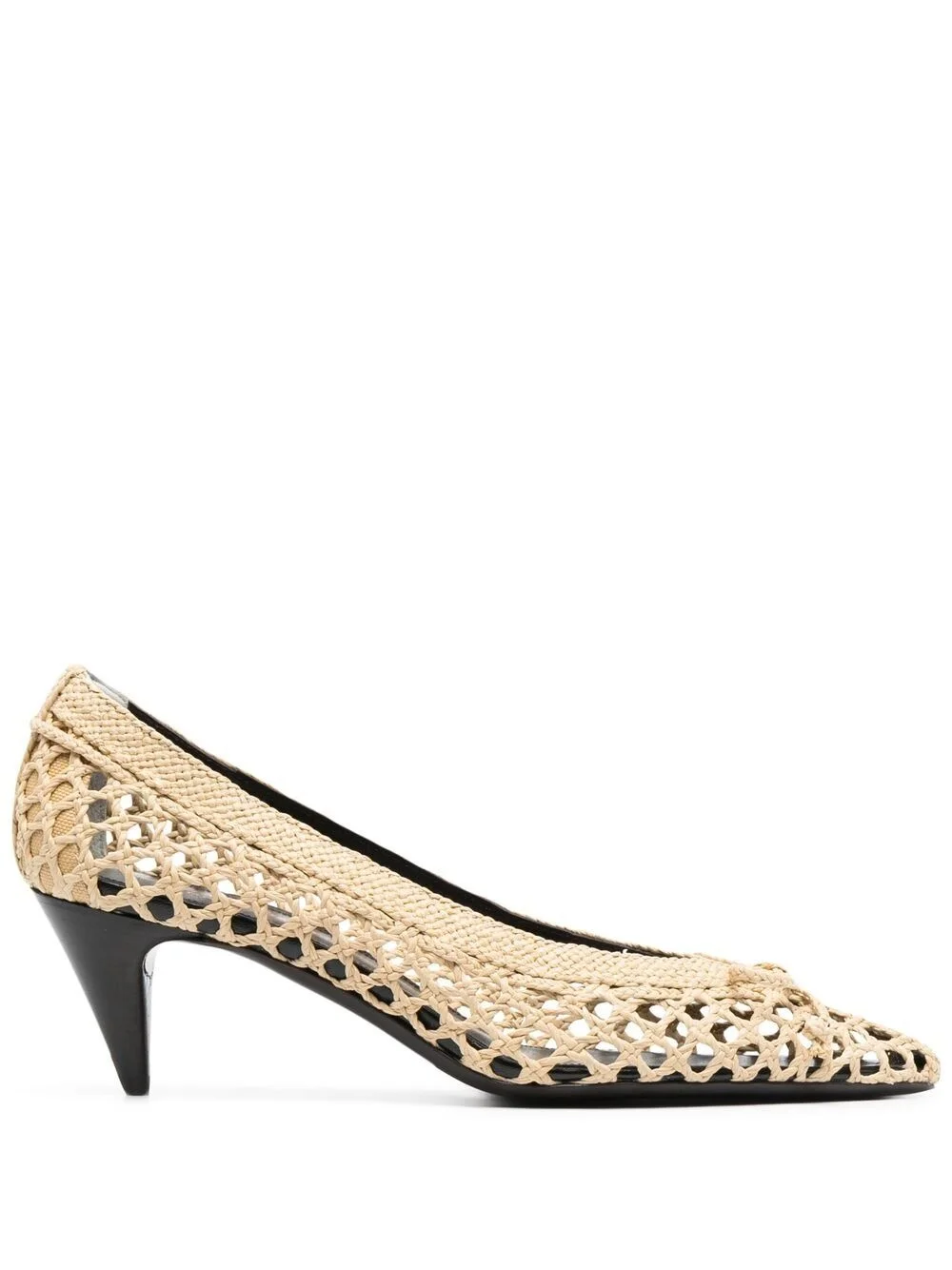 raffia pointed pumps Searching for footwear with a difference? Constructed from a raffia upper, these pointed pumps from Saint Laurent certainly fit the bill. Blending in is overrated. Made in Italy Composition Outer: Raffia 100% Lining: Calf Leather 100% Sole: Calf Leather 100% SIZE & FIT Measurement HEEL 2.75 in(7 cm) Sole height 0.39 in(1 cm)