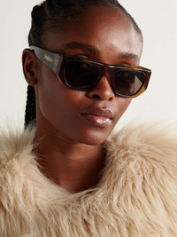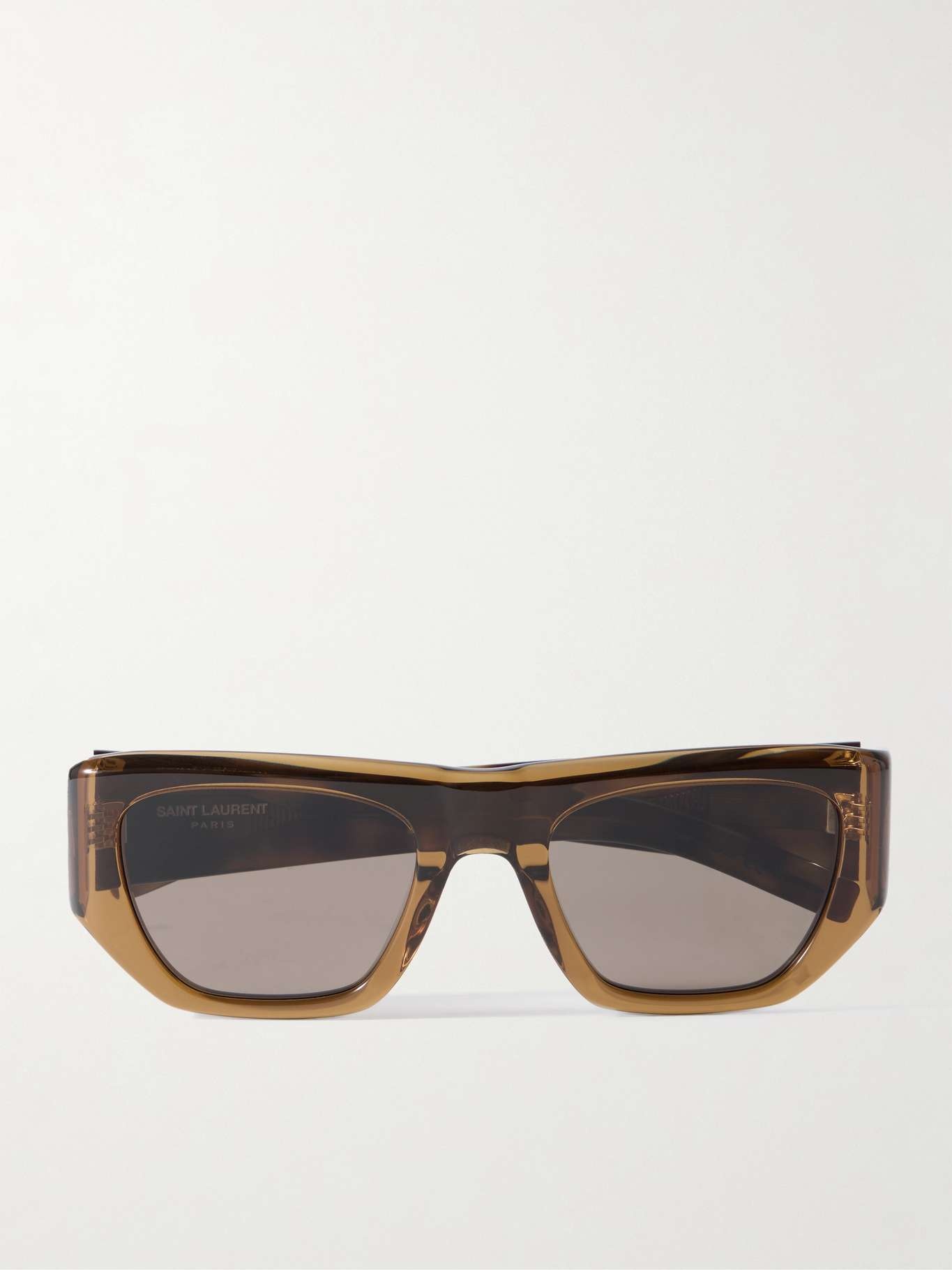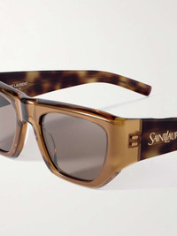 EDITORS'NOTES SAINT LAURENT Eyewear's sunglasses have angular D-frames, so they'll suit those with rounder features. They're made from semi-translucent brown acetate with contrasting tortoiseshell arms and the brand's gold-tone emblem on the sides. Keep yours in the protective case when you're not wearing them. SIZE & FIT This item’s measurements are: - Height: 4.5cm / 1.8in - Width: 14cm / 5.5in DETAILS & CARE - Translucent brown and tortoiseshell acetate - Come with a case - 100% UV protection