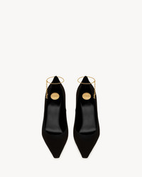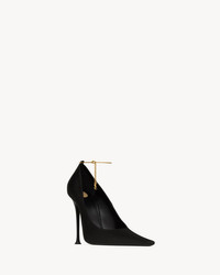 PUMPS WITH A POINTED TOE AND FLARED STILETTO HEEL, FEATURING A CABLE-CHAIN ANKLET WITH CASSANDRE CHARM. - CERTIFIED VISCOSE AND CERTIFIED SILK - LEATHER SOLE - ROUND SAINT LAURENT-ENGRAVED METAL PLAQUE ON THE INSOLE - ADJUSTABLE ANKLE STRAP - TOTAL HEEL HEIGHT: 11 CM / 4.3 INCHES - CASSANDRE CHAIN IN BRONZE-TONE HARDWARE - VISCOSE, SILK - STYLE ID 8060219QAB11000 - MADE IN ITALY
