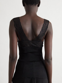 Lingerie dressing is big this season and SAINT LAURENT's tank makes a sultry statement. It's made from ribbed silk and framed with sheer lace topped and sweet bows. Wear yours with a pencil skirt and oversized leather jacket.